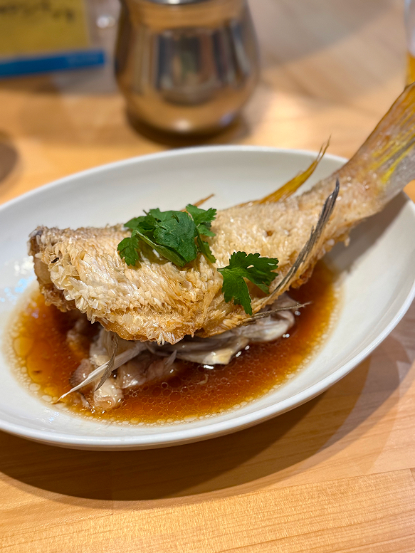 続いて登場したのは、天然魚をまるごと一尾カリッと揚げた豪快な一品。